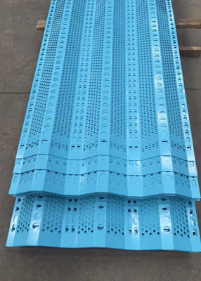 金屬防風(fēng)抑塵網(wǎng)板材厚度0.5mm-1.5mm之間,均是由數(shù)控設(shè)備進(jìn)行沖孔,成型,再進(jìn)行雙面高壓靜電粉末噴涂的表面抗腐蝕處...